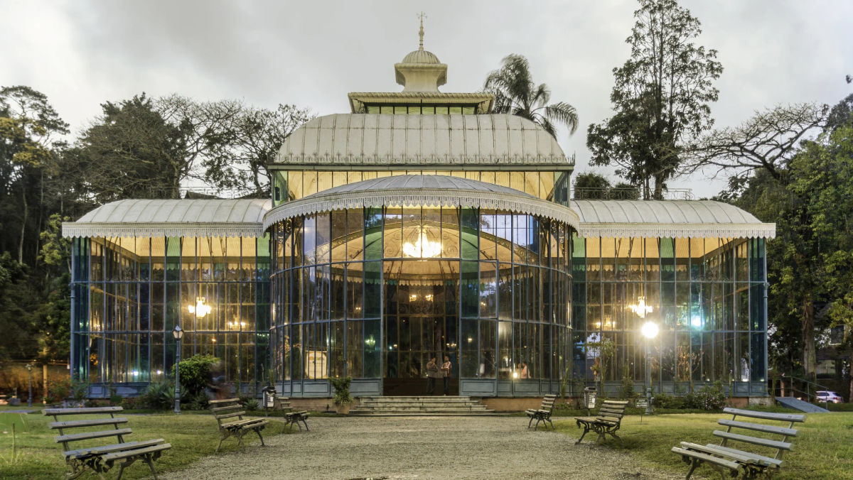 O Palácio de Cristal é um dos pontos mais encantadores de Petrópolis. Com sua estrutura inteiramente composta por ferro fundido e placas de vidro, o edifício se destaca no cenário urbano como uma joia arquitetônica leve e luminosa.