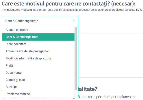 - În caseta „De ce ne contactezi?” selectează „Cont și confidențialitate”